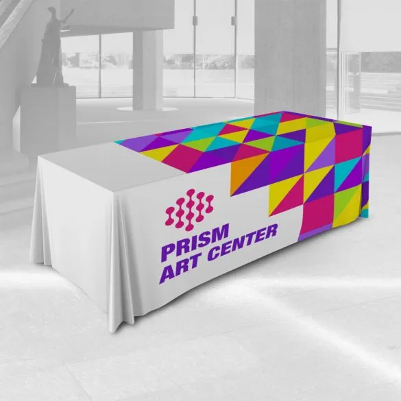 Fully customizable across the entire surface, branded tablecloths add a finished, professional look to table displays, trade show booths, and more. Available in several sizes, they are wrinkle-resistant and machine washable.